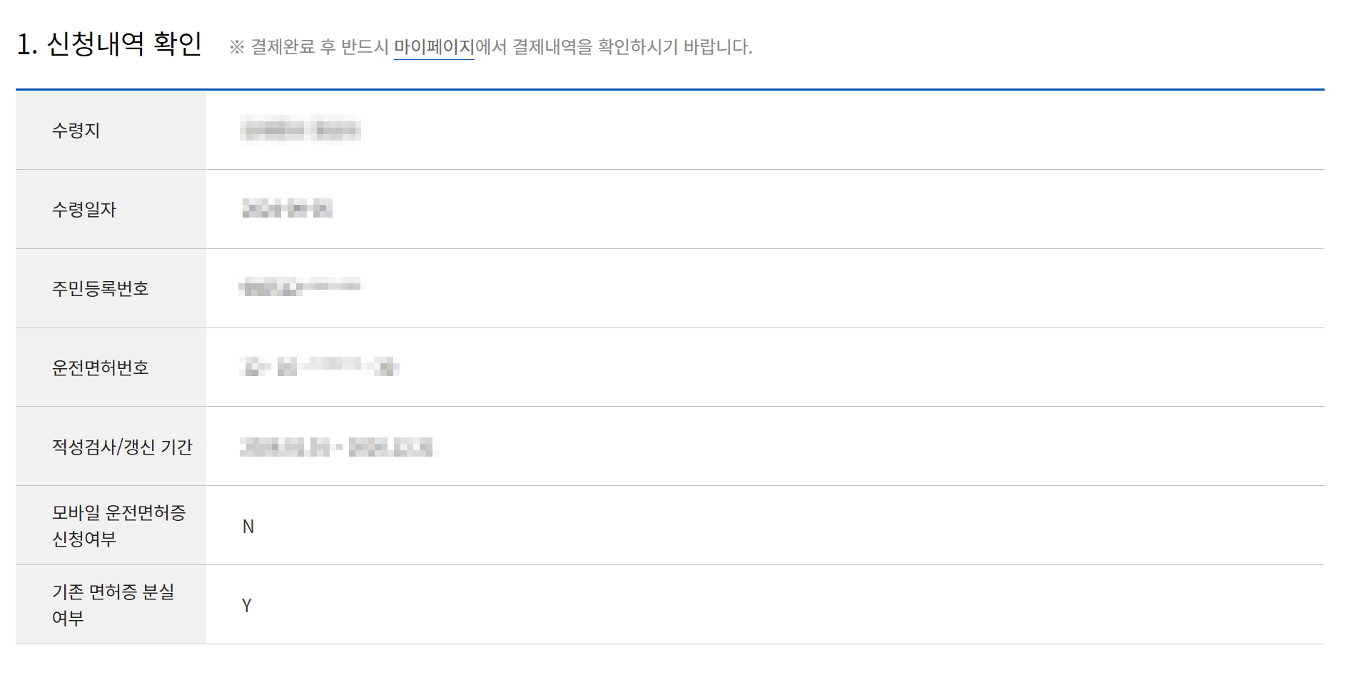 7. 결제를 완료하면 운전면허증 재발급 신청 완료!
