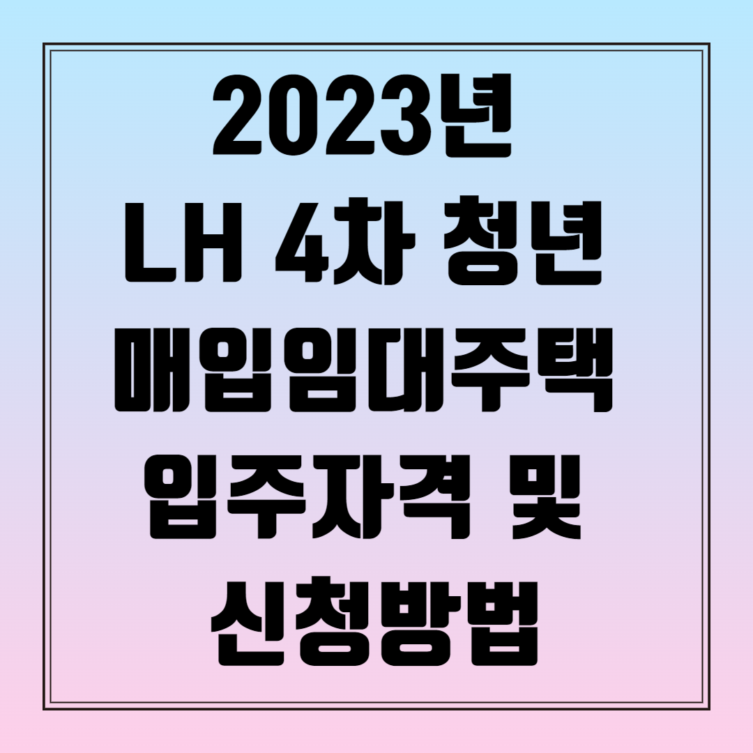 다가오는 2024년을 앞두고 LH에서 2023년 4차 청년매입임대주택 예비입주자 모집공고를 발표했습니다. 서울지역 같은 경우에는 지원자가 많기 때문에 경쟁률은 높겠지만, 당첨만 된다면 시세보다 훨씬 저렴한 가격으로 입주를 할 수 있으니 신청을 안 할 이유가 없겠죠?